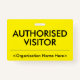 Este humilde diseño de placa presenta el mensaje "VISITANTE AUTORIZADO", y el nombre de una empresa de personalizable u otro mensaje personalizado. Una insignia como esta podría ser usada para mostrar que alguien en un negocio o lugar de trabajo es un invitado o visitante autorizado. [~Z0000307]