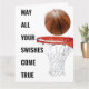 Tarjeta creativa de cumpleaños de baloncesto con diseño temático de baloncesto y línea divertida para jugadores de baloncesto, entrenadores o hinchas deportivos de equipo. Editar texto para agregar nombre.