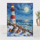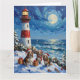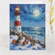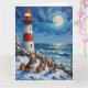 Tarjeta Basset Hound Christmas Lighthouse Holiday