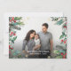 Es oficialmente la temporada para enviar saludos navideños alegres a su familia, amigos y seres queridos. Esta tarjeta presenta su mejor foto en formato horizontal, enmarcada por un borde de gráficos botánicos en una paleta festiva de acuarela con líneas de tinta y hojas delineadas en dorado, bayas rojas, muérdago verde, agujas de pino, ramas de pino y otro follaje invernal.