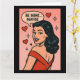 This pop art-inspired Valentine’s Day card delivers charm with a wink. Featuring a stylish woman in a red dress surrounded by hearts and sparkles, the playful message “BE MINE… MAYBE” adds just the right touch of sass. Perfect for Galentine’s gifting, flirtatious fun, or anyone who loves a little romance with a side of attitude.