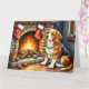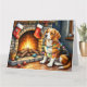 Tarjeta Beagle Sitting by Fireplace with Christmas Lights