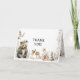 GRACIAS NOTAS que coinciden con WILD ONE WOODLAND CREATURES BIRTHDAY COLLECTION | Un cumpleaños neutral de género gracias con lindos y dulces animales en un entorno de pinares de montaña. Un oso adorable con una corona de follaje en la cabeza, un ciervo, un zorro, un conejo, una ardilla y un pájaro pequeño están rodeados de champiñones y delicadas flores silvestres con vegetación vegetal de primavera o verano. Existe una colección completa de productos disponible para coordinar: MSP0104
