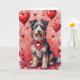 Tarjeta Bearded Collie Valentine Dog Sitting with Hearts