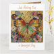 A pretty card wishing a friend or family member a good day with a front illustration of a beautiful gold, teal and orange butterfly surrounded by yellow, white and purple flowers. It's done with an impasto style and just emanates beauty and grace.
