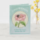Esta tarjeta de felicitaciones a los recienes nacidos incluye a un hada dulce y pequeña durmiendo en una flor rosa. También está disponible una versión de piel clara.