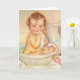 Una encantadora tarjeta de felicitación vintage con un lindo bebé bañándose en un bol. No dude en añadir un nombre, una fecha o cualquier texto que desee.