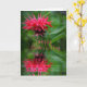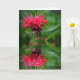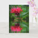 Esta tarjeta del Día de la Madre presenta una flor de bálsamo de abeja roja y es reflejo. El bálsamo de abeja también se llama monarda, té Oswego y orégano salvaje. La flor es hermosa, atrae a las abejas y mariposas, y también es medicinal y puede ser usada en lugar de orégano en la cocina.