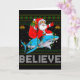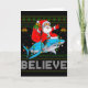 Tarjeta Believe Xmas Funny Santa Riding Shark Ugly Christm