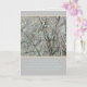 La foto en frente de la tarjeta muestra ramas de árboles cubiertas de hielo luego de una tormenta de hielo. El sol que golpea las ramas las hace brillar como diamantes y otras joyas preciosas en turquesa, melocotón, amarillo y blanco. La cita de la parte delantera se refiere a los árboles envueltos en hielo que se parecen a joyas de un dón para una gran bola. El interior está en blanco para tu propio mensaje. ¡Mantén varios a mano para mantenerte en contacto con tus amigos!