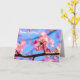 Un grupo de flores rosadas de sakura sobre una rama de árbol en el fondo azul y rosa. La encantadora belleza de las flores frescas del cerezo. Una pintura digital de una fotografía. Impresionante tarjeta de felicitación floral de cumpleaños. Puede transferir este diseño a una variedad de otras tarjetas. Simplemente elija el producto de la opción desplazable "Transferir diseño a un producto". Este diseño es totalmente personalizable. Puede cambiar o eliminar todas las imágenes y textos. Si necesita más personalización, utilice el botón "Personalize", o "Edit design" (como puede ser el funda) del color azul, o el enlace "Details" —> "Click to personalizar more". Se le transferirá a la página "Herramienta de diseño" donde podrá utilizar fácilmente la opción "LLENAR/FIT" para AJUSTAR EL DISEÑO AL TAMAÑO Y FORMA del producto, rotarlo, reflejarlo y cambiar el tipo, color del tipo de letra (si lo hubiera), o para agregar su propio texto desde el principio. Solo sé creativo, personalizar, compra uno, diviértete y sé feliz!