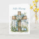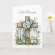 La Pascua es un momento de alegría, renovación y esperanza, y esta hermosa tarjeta diseñada es perfecta para compartir deseos cálidos con cualquiera. Con una cruz de madera cubierta de flores azules suaves contra una valla blanca rústica, el diseño capta la belleza de la temporada. En el interior, un mensaje sencillo pero reflexivo envía bendiciones de Pascua y buenos deseos para una primavera feliz y brillante. Una manera encantadora de extender la alegría de las vacaciones.