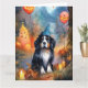 Tarjeta Bernés de montaña de Halloween con calabazas espel