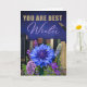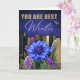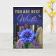This appreciation card features a deep gradient of indigo to royal blue, creating a rich and thoughtful atmosphere. The text “YOU ARE BEST Writer” appears in bold golden uppercase paired with a flowing lavender script, giving elegance and importance to the message. A row of vintage-style books lines the midsection, symbolizing knowledge, creativity, and storytelling. A fountain pen rests in the top right corner, completing the writing theme. At the bottom, a vibrant arrangement of bright blue, lilac, and purple flowers brings beauty and freshness to the card, adding a celebratory feel. Perfect for writers, authors, novelists, poets, content creators, journalists, screenwriters, bloggers, and anyone passionate about written expression.The inside includes a sample photo you may replace with your own or remove to leave a blank space. The right-hand inside page is fully writable and customizable, allowing the sender to include personal wishes, musical quotes, dedication lines, or meaningful notes.