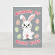 This design shows a plump white bunny centered on a neutral gray background 🐰, staring out with angled green eyes, furrowed brows, and a tiny-toothed snarl that feels like a teasing warning between close friends. Soft peach and pale green egg shapes sit to either side, adding a gentle spring touch 🌷 that contrasts with the bunny’s tough pose. At the top, the words “BEWARE OF” appear in red all-caps lettering with a thin white outline, set in a straight line above the ears. At the bottom, “BUNNY KICKS” is placed in matching red all-caps with the same white outline, stretching beneath the bunny’s feet. The mix of sweet egg colors and the bunny’s stern face reads like a joking challenge, as if the character is trying to impress someone with mock bravery. A small “X” mark sits on the bunny’s belly, like a cheeky badge of toughness. The oval eggs show simple patterns in pale green and peach, framing the bunny against the flat gray field.