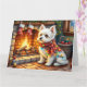Tarjeta Bichon Frise Fireplace with Christmas Lights