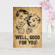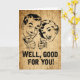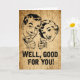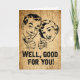 Una divertida tarjeta de felicitación con estilo rústico y aspecto vintage para cualquier ocasión -- para felicitar a alguien por algo de manera descarada. Nuevo coche, nueva casa, nuevo trabajo, nuevo hijo, nuevo cónyuge, o incluso divorcio. Lo que sea. Puedes cambiar la felicitación a lo que quieras decir, o dejarla exactamente como está. Útil para muchas ocasiones. Una felicitación ligeramente descarada, pero cómica, para lo que se adapte a tus necesidades. Así que, ¡bien por ti!