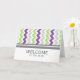 Bienvenido a tu equipo a tus nuevos empleados y haz que se sientan apreciados con este alegre y elegante retro brillante morado, verde lima, gris carbón y blanco moderno zigzags rayas de chevron patrón de empleados de negocios tarjeta de bienvenida, neutro de género, un maravilloso constructor de moral.