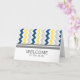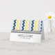 Bienvenido a tu equipo a tus nuevos empleados y haz que se sientan apreciados con este alegre y elegante limón amarillo brillante retro, azul marino oscuro, gris carbón y blanco moderno zigzags rayas de chevron patrón de empleados de negocios tarjeta de bienvenida, género neutro, un maravilloso constructor de moral.