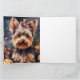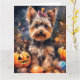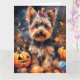 Tarjeta Biewer Terrier de Halloween con calabazas Espantos