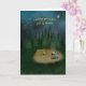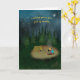 This is a birthday card with a couple tent camping roasting marshmallows over a campfire. The background is a starry sky above the trees of an forest and the text, ‘wishing you a year full of wonders.’