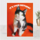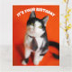 HANDSOME CAT WITH TIE. INSIDE READS: YOU LOOK MEOWVELOUS. HAPPY BIRTHDAY!