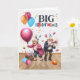 Balloons, confetti and party hats with a very excited old couple ready for a BIG birthday celebration creates a card for wishing anyone you know a great celebration.
