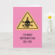 This birthday card features a caution triangle sign with a skull wearing a party hat and a party horn.