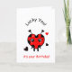 This adorable folded birthday card features a heart-shaped ladybug in red and black, surrounded by sweet hearts on a clean white background. A charming and cheerful design that feels warm, joyful, and full of affection.