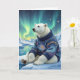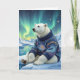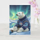 Tarjeta Birthday Polar Bear Sitting Under Northern Lights