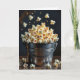 Un cubo metalizado brillante se llena hasta el borde con palomitas recién machacadas, con algunos granos explotando en el aire. El texto interno es editable.