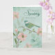 Tarjeta Birthday Spring Leaves Flowers and Bird
