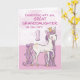 Un dulce poni rosa como tu bisnieta está bailando con el número uno. Los detalles dorados están entretejidos en su crin y cola. ¡Tarjeta perfecta para desearle a tu bisnieta su 1er cumpleaños!