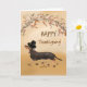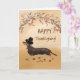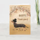 Puedes enviar esta tarjeta para saludar a cualquiera con un feliz Día de Acción de Gracias. El perro y el fondo se hacen en acuarela añadiendo un toque artístico de otoño. El frente muestra un lindo dachshund negro y marrón. Esto será perfecto para darle a cualquier amante de los perros. Obtén tu copia ahora.
