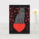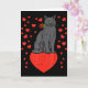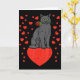 Tarjeta Black Cat Biting Rose Hearts Valentines Day Animal