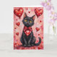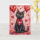 Tarjeta Black Cat Valentine Sitting with Hearts Red