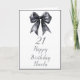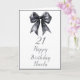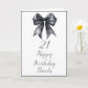 tarjeta de cumpleaños con una cinta negra de arco de coqueta. Las palabras se pueden cambiar para adaptarlas a sus propios detalles o requisitos