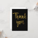 La moderna y elegante tarjeta presenta "Gracias" de color dorado sobre fondo negro. Adecuado para eventos post-boda, corporativos y más.