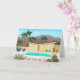 Con una encantadora representación de una casa moderna amarilla de mediados de siglo con decoración de jardín de tiki, esta tarjeta de felicitación exhibe líneas depuradas, formas geométricas audaces y colores vibrantes que personifican la estética icónica de mediados de siglo. Perfecto para añadir un toque de sofisticación vintage y el estilo del desierto de Palm Springs a su correspondencia.