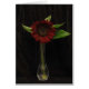Esta elegante carta de notas tiene un bonito girasol rojo en un simple jarrón con algunas hojas verdes sobre un fondo de terciopelo negro. En el interior hay una pequeña flor sobre un degradado rosa pálido.
