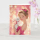 Tarjeta Blonde Girl in Hot Pink w/ Cute White Bunny BDay