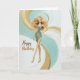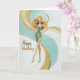 A glamorous birthday card featuring a stylish blonde in a teal and gold dress with flowing, artistic accents that create a sense of movement and elegance. Perfect for celebrating someone who shines with confidence, grace, and vibrant energy.