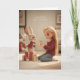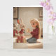 A warm and cozy birthday card featuring a blonde girl sitting on a soft rug, receiving a gift from an adorable bunny dressed in a red outfit. Surrounded by wrapped presents and soft neutral tones, the scene captures a sweet and joyful moment of surprise and celebration. Perfect for anyone who loves heartfelt, charming birthday designs.