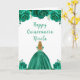 Esta tarjeta de cumpleaños Quinceanera cuenta con flores florales verdes purpurinas falsas y una hermosa princesa con el pelo rubio y un vestido elegante. Es perfecto para una fiesta de cumpleaños de Quinceanera.