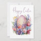 A pastel Easter egg is nestled among vibrant spring flowers, with a cheerful orange bird perched nearby. This elegant card blends seasonal symbols with artistic flair, perfect for sending Easter blessings with style