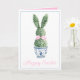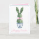 This Easter greeting card features a cute bunny rabbit green topiary with pink bow in a blue and white chinoiserie flowerpot. Personalize the holiday messages on the front and inside with your choice of special text.