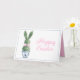This Easter greeting card features a cute bunny rabbit green topiary with pink bow in a blue and white chinoiserie flowerpot. Personalize the holiday messages on the front and inside with your choice of special text.