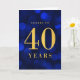 Tarjeta de felicitación por cumpleaños número 40 de la moda con las palabras "Saludos a 40 años" en Relieve metalizado de oro falso contra un fondo de patrón de luces de caja de zafiro azul. Para agregar texto al interior de la tarjeta, haga clic en el botón "Personalizar". *Tenga en cuenta que la marca de agua Zazzle que aparece en la vista previa del zoom NO aparecerá en el producto impreso final. © Rosewood y Citrus