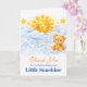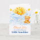 Thank your guests with this sweet little sunshine baby shower design featuring a smiling sun, fluffy blue clouds, glowing stars, and a cuddly teddy bear. The soft watercolor style and cheerful yellow and sky blue tones create a warm and heartfelt feel, perfect for celebrating your special day. This charming design adds a thoughtful finishing touch to a sunshine-themed baby shower and leaves a lasting, joyful impression.