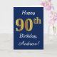 Tarjeta Blue, Faux Gold 90th Birthday + Custom Name